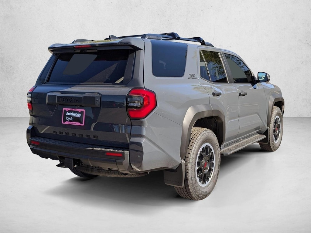 • Black honeycomb-style grille, mirror caps, door handles, and overfenders; color-keyed rear spoiler; black "trd off road" and "4runner" badges.