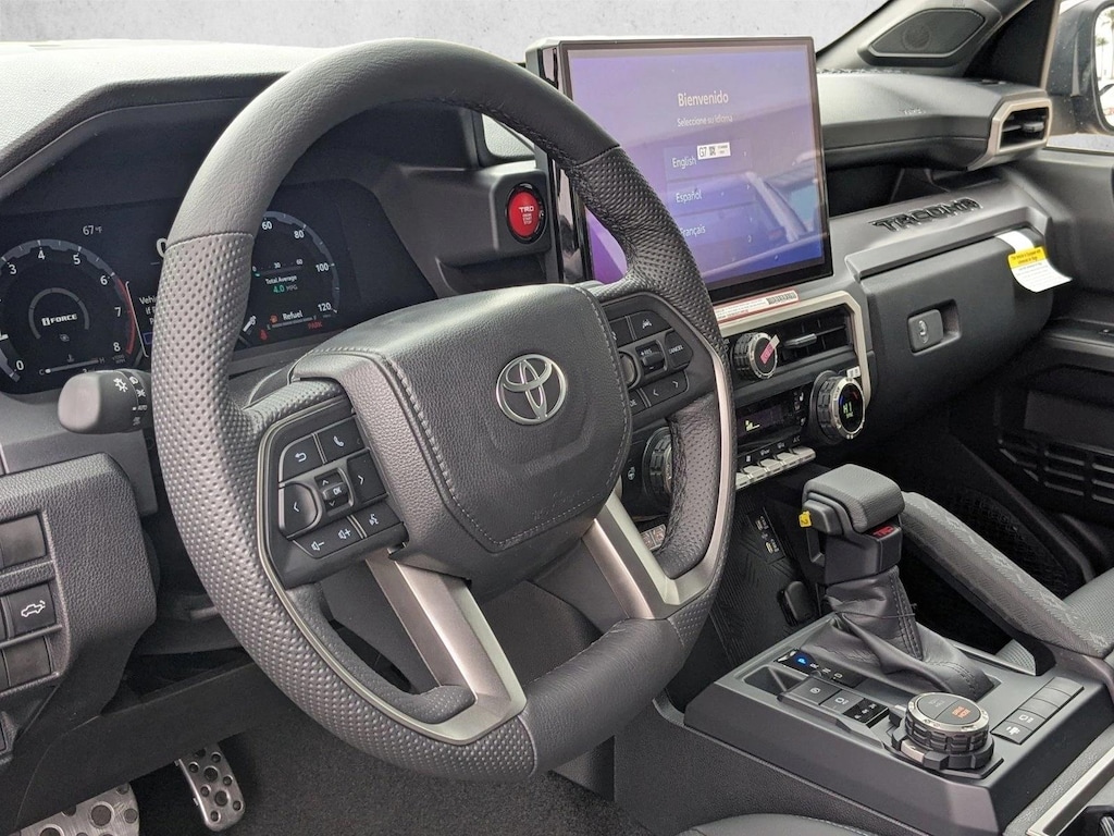 Trd sport premium package (4wd a/t) — includes softex®-trimmed seats with heated and ventilated 8-way power-adjustable front seats, leather-trimmed heated steering wheel, 14-in. Toyota audio multimedia display, panoramic view monitor (pvm), jbl® premium audio with jbl® flex portable speaker, moonroof, qi-compatible wireless charging, dual zone automatic climate control, front and rear parking assist with automatic braking (pa w/ab) and pedestrian detection, prewired auxiliary switches, digital rearview mirror, integrated trailer brake controller (itbc), power open/close tailgate, digital key capability, 400w/120v ac power inverter, and power horizontal rear window. Disclaimer: Do not exceed the recommended weight limit when placing items on the tailgate. See your. Owner’s. Manual. For details.<br>The panoramic view monitor does not provide a comprehensive view of the area surrounding your vehicle. Look around to confirm clearance. See. Owner’s. Manual. For limitations.<br>Jbl® is a registered trademark of harman international industries, inc.<br>A compatible. Bluetooth. ®-enabled phone must be paired. Phone performance depends on software, coverage and carrier. Jbl® is a registered trademark of harman international industries, inc.<br>Wireless charging may not be compatible with all mobile phones, smart devices, tablets, e-readers, mp3/wma players and like products.<br>Front and rear parking assist with automatic braking (pa w/ab) may warn drivers of, and potentially brake for front and rear collisions with certain objects when traveling at low speeds. Drivers should visually confirm clearance during use. See. Owner’s. Manual. For instructions and limitations.<br>The pedestrian detection system is designed to detect a pedestrian ahead of the vehicle, determine if impact is imminent and help reduce impact speed. It is not a substitute for safe and attentive driving. System effectiveness depends on many factors, such as speed, size and position of pedestrian, and weather, light and road conditions. See. Owner’s manual. For additional limitations and details.<br>Integrated trailer brake controller is an electronic system that operates in tandem with a trailer equipped with an electric braking system. It is designed to help the driver maintain trailer control by increasing or reducing trailer braking based on trailer weight. It is not a substitute for safe towing practices. Factors including speed, weather, road conditions and driver input can all affect trailer braking control. See. Owner's. Manual. For additional limitations and details.<br>Liftgate requires key fob present.<br>Digital key requires active remote connect subscription. Remote start/stop and/or lock/unlock and other features of remote connect are only available on select models. Use only if aware of circumstances surrounding the vehicle it is legal and safe to do so (e.G., do not remotely start a gas engine vehicle in an enclosed space or if the vehicle is occupied by a child). Remote connect depends on certain factors outside of toyota's control in order to operate, including 4g network availability, a cellular connection, and gps signal. Without any one or more of these things, operability may be limited or precluded. Digital key also requires. Bluetooth. ® connectivity. Remote connect is included with select paid connected services packages. See your toyota dealer for details. Services may vary and are subject to change without notice. Services require account registration through the toyota app and acceptance of the connected services terms of use at. Https://www.Toyota.Com/content/dam/toyota/privacyvts/pdf/connected-services-terms-use.Pdf. And master data consent. Data charges may apply. For toyota connected services’ vehicle-generated data collection, use, sharing, and retention practices and agreements, see. Https://www.Toyota.Com/support/privacy-notice/. .<br>Do not exceed 120v. See. Owner’s manual. For additional limitations and details.